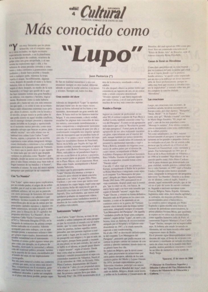 Más conocido como «Lupo Encina», publicación del Diario ABC; suplemento cultural escrito por Juan Pastoriza, domingo 23 de enero del 2000.